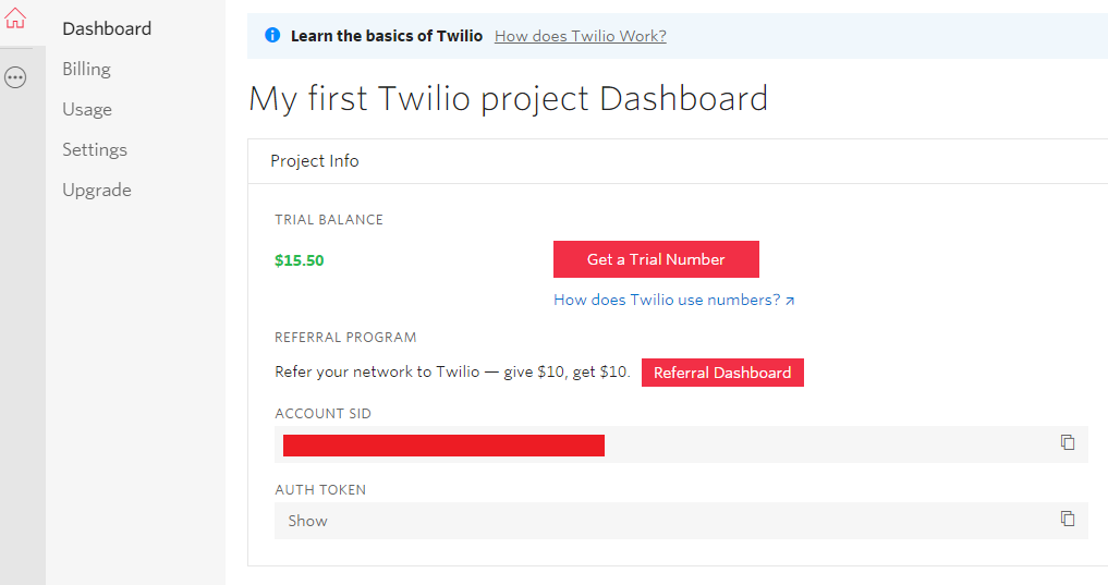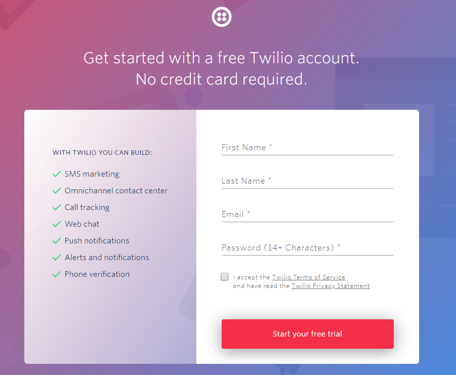Prerequisite: Buy a new Twilio phone number and purchase credits for SMS messages