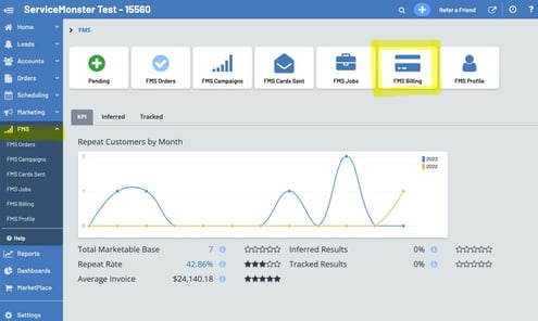 From the Main Menu, select the "FMS" tab, then select the "FMS Billing" icon.