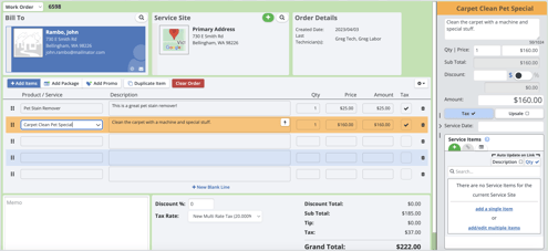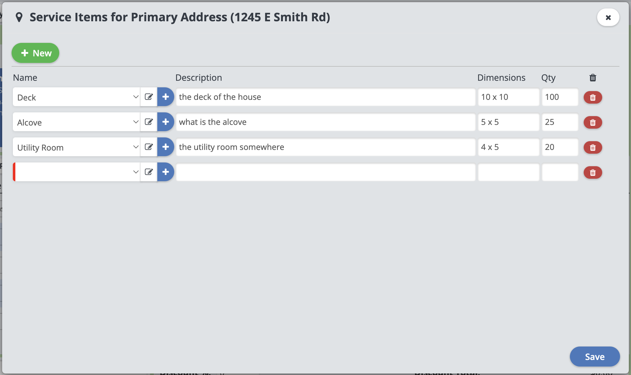 You can save a considerable amount of time on repeat business by documenting all of the rooms, surfaces, items, etc that were serviced will be saved to that service location. Makes billing by the square unit easier too!