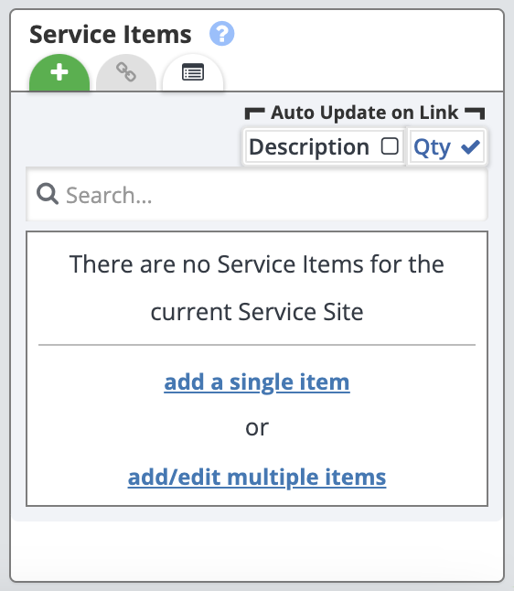 Create A New Service Item: Click on the “+” button to create a single new Service Item.