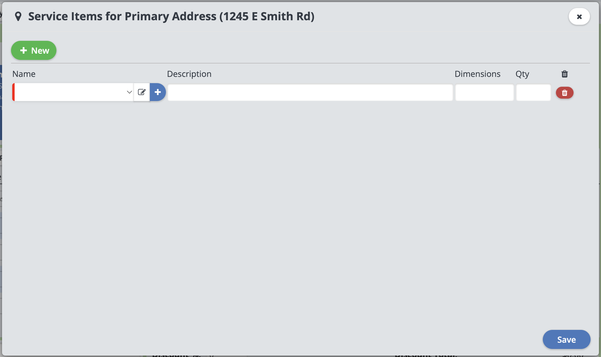 To add another Service Item, you can click on the green “+ New” button to add another service item to the list.