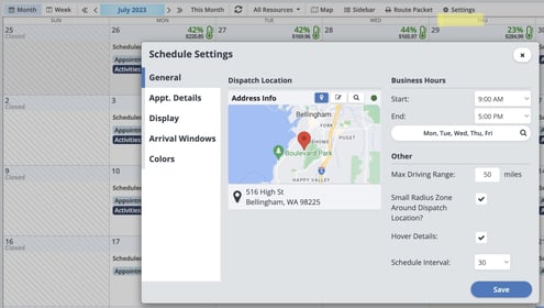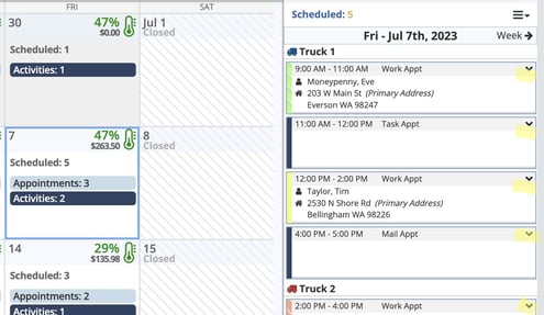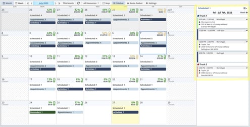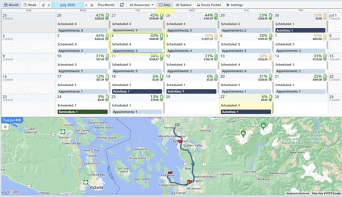 The Monthly Planner is a great way to quickly look over a single (or multiple) routes, and get a clear idea of where your time and resources stand for the future. Get a quick look at which days are full, and where you have room to add more work.