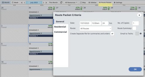 Clicking the "Route Packet" button opens up the Route Packet Criteria where you can customize and create your route packets.