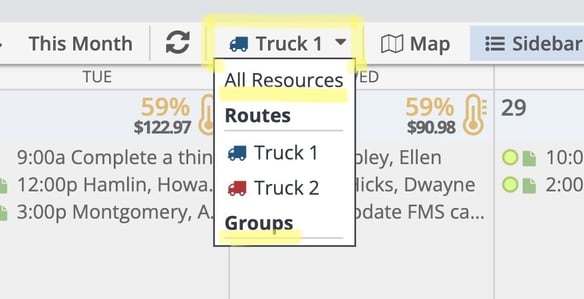 All Resources: Clicking this will open a drop-down menu where you can choose if you want to see all routes (All Resources), one specific route, or a specific group of routes.