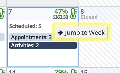 Double clicking or right clicking on a single day in either view type will take you to that day within the Week View.