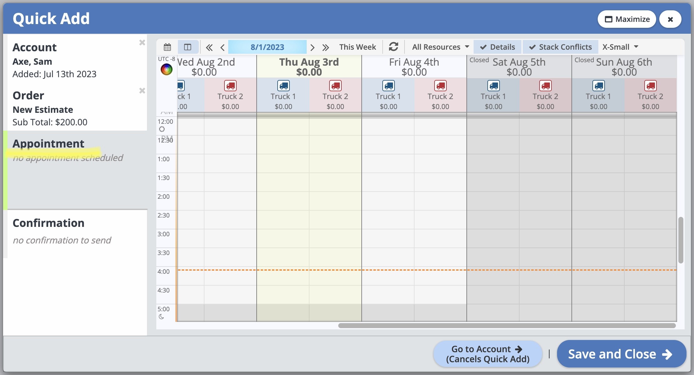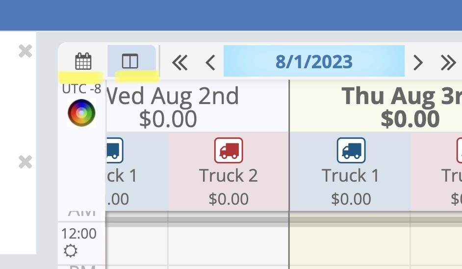 The temp icon in the upper right corner indicates how filled your day is based on the current selected resources, and below that is the revenue total for All Resources (if enabled).