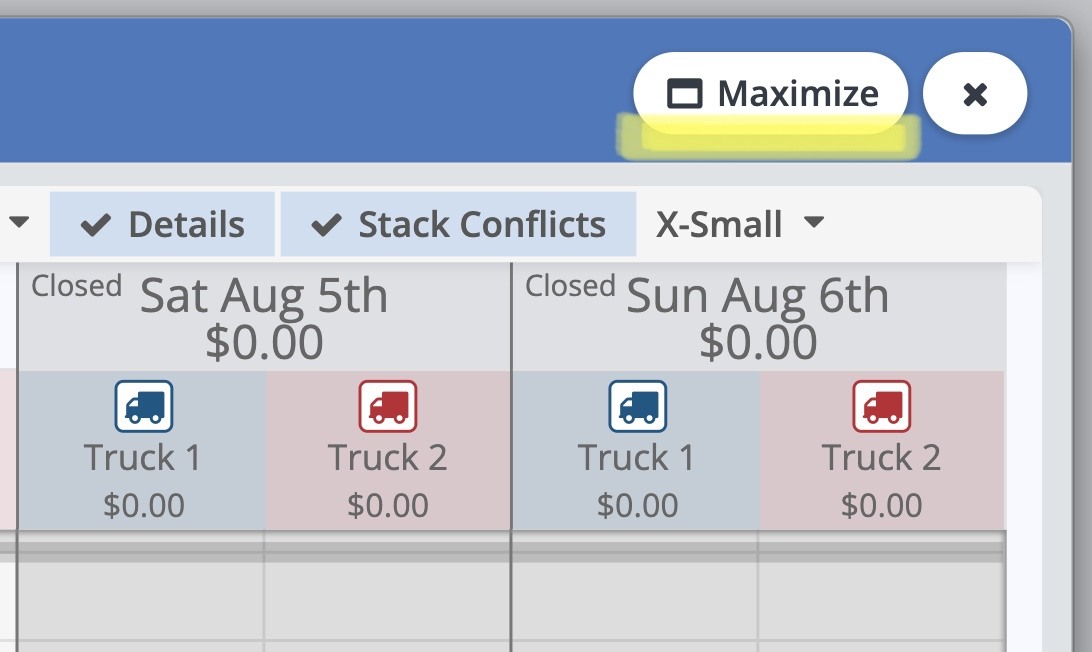 For a larger view of the Schedule, please click the "Maximize" button in the upper right, then click "Restore" to return to the original view.