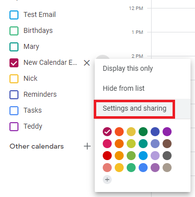 To share with your technicians, select the calendar in the sidebar and in the drop down, click "Settings and sharing"