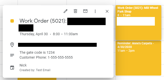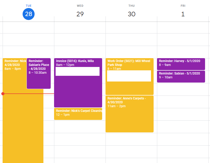 Any appointments will show up color coded by calendar/route. Information such as address, time will show up on the calendar event.