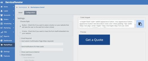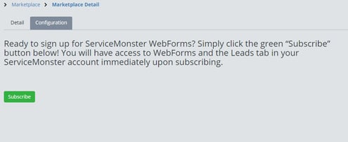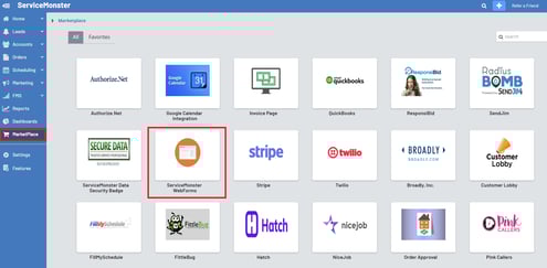 To set up webforms go to Marketplace and click on ServiceMonster WebForms