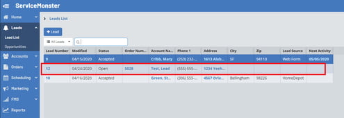 Where do I view the potential customer information in ServiceMonster that was submitted with a Webform from my website?