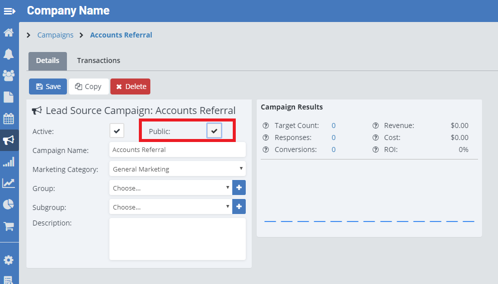 Note: You can mark any marketing campaign as public, not just lead sources.